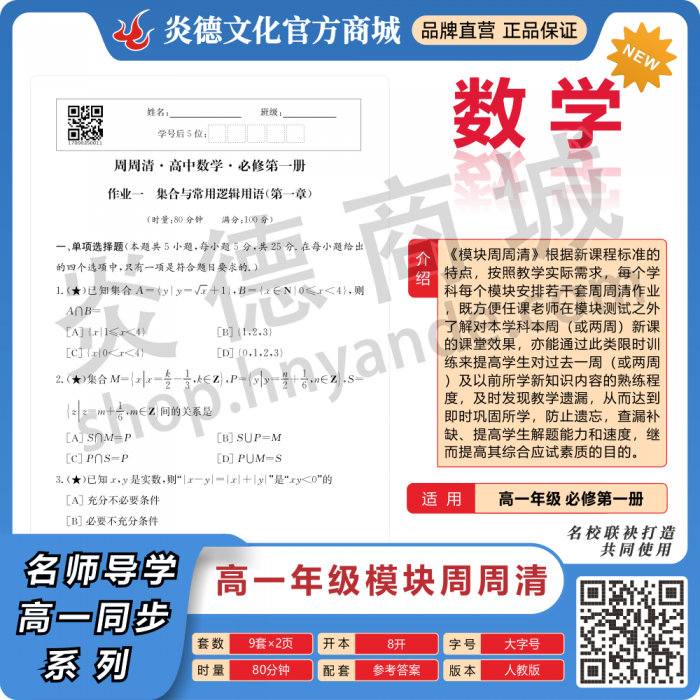 《模块周周清》根据新课程标准的特点,按照教学实际需求,每个学科每个模块安排若干套周周清作业,既方便任课老师在模块测试之外了解对本学科本周(或两周)新课的课堂效果,亦能通过此类限时训练来提高学生对过去一周(或两周)及以前所学新知识内容的熟练程度,及时发现教学遗漏,从而达到即时巩固所学,防止遗忘,查漏补缺、提高学生解题能力和速度,继而提高其综合应试素质的目的。